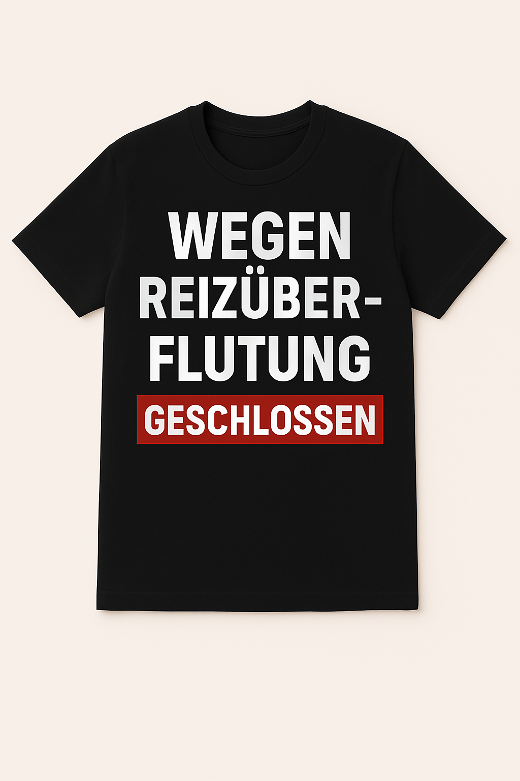 Manchmal hilft nur eins: abschalten. Mit dem T-Shirt „Wegen Reizüberflutung geschlossen“ sendest du eine klare Botschaft – charmant, ehrlich und mit einem Augenzwinkern. Perfekt für Menschen, die zu viel Input mit Stil begegnen.